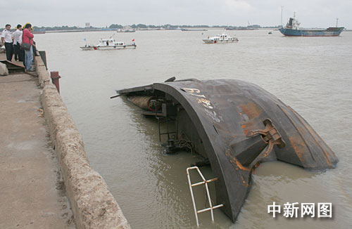 10時54分,“捷海19”最終發(fā)生側(cè)翻,僅船頭部分露出水面。船上7名船員中1人及時跳上了碼頭,其余6人落水。在現(xiàn)場海巡艇、協(xié)助搜救船舶的奮力營救下,6人落水人員全部獲救。同時,張家港海事局調(diào)集了3艘打撈工程船實施打撈作業(yè),安排了圍油欄和清污船做好現(xiàn)場的防污和清污工作。