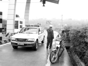 “摩托車不能進(jìn)入高速路喲!”昨天上午11時10分,長涪高速涪陵站(長涪高速30.5km)入口,一輛摩托車準(zhǔn)備駛?cè)敫咚俾,被正在進(jìn)行入口檢查的七大隊執(zhí)法隊員牟龍云、余浩洋發(fā)現(xiàn)并攔下?删驮趫(zhí)法人員對其勸說時,摩托車駕駛員突然加起油門,通過收費站下道口的欄桿空隙,強行闖入長涪高速路,并逆向行駛在超車道上。