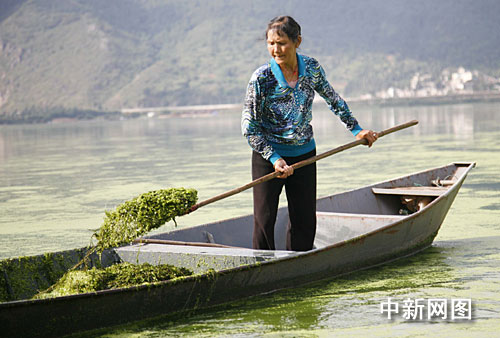 滇池是中國第六大淡水湖,也是目前中國污染最嚴(yán)重的內(nèi)陸淡水湖泊之一。從一九八八年開始,無論風(fēng)吹日曬,每天早上七點,昆明西山區(qū)福海街道辦事處新河社區(qū)巾幗打撈隊的隊員都會劃著船進(jìn)入滇池草海,打撈垃圾和水藻。