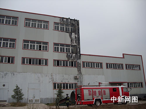 消防指揮員通過火情偵察發(fā)現(xiàn),起火地點(diǎn)位于該廠房的一個(gè)化驗(yàn)車間,由于火災(zāi)初期火勢(shì)猛烈,整個(gè)車間頂部的塑鋼板已經(jīng)被燒黑,且火勢(shì)不時(shí)往上竄,如果不加以控制,勢(shì)必會(huì)造成火燒連營(yíng)。
