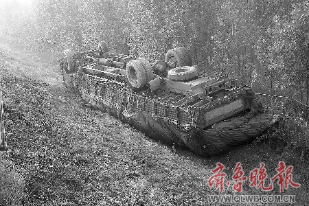 10月13日上午11時(shí)許,在濟(jì)青高速公路濟(jì)南方向282公里處,一輛大貨車(chē)翻進(jìn)了高速公路旁邊的深溝內(nèi)。