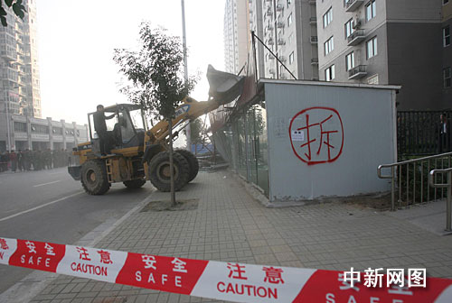 據(jù)悉,自燕莊安置區(qū)正式建成入住以后,極個別村民無視城市市容規(guī)劃要求,擅自在安置區(qū)周邊(包括沈北路、英協(xié)路、玉鳳路與沈北路交叉口)違章搭建門面房,共99間,嚴重影響市容環(huán)境,在社會上造成非常惡劣的影響。未來路辦事處組織執(zhí)法中隊多次前去制止私搭亂建現(xiàn)象,并依法對當事人下達《責令改正通知書》,張貼《拆除公告》,責令其限期自行拆除違章搭建。完
