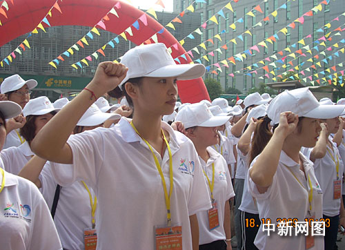 儀式結(jié)束后,城市志愿者立即分赴各自的服務點投入緊張的服務工作中。