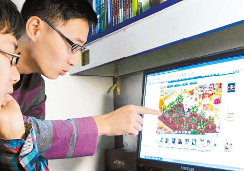 “我們宿舍不少同學(xué),幾乎每天晚上都定好鬧鐘,半夜起床,衣衫不整地打開電腦,睜著蒙眬的睡眼收菜、偷菜!蔽靼餐鈬(guó)語大學(xué)的王蒙同學(xué)笑著告訴記者:“我昨晚兩點(diǎn),就把同學(xué)菜地里的石榴給偷了!币?yàn)閷W(xué)校晚上要停電,王蒙買的無線上網(wǎng)卡便成了偷菜的法寶,宿舍其他同學(xué)也跟著她一起偷菜,“每次半夜偷完菜,我們還躺在床上交流一下經(jīng)驗(yàn),很有意思”。