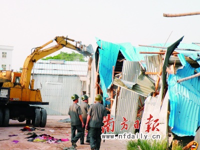 昨日,在繼近兩年來近百次的打擊走私舊服裝的行動(dòng)后,陸豐市出動(dòng)800多公安、工商、城管等警力、人力,對位于碣石鎮(zhèn)新繞村的“洋垃圾”窩藏點(diǎn)的288間鐵皮房進(jìn)行定點(diǎn)清除。