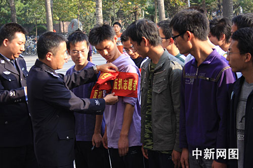中新網(wǎng)鄭州10月23日電 (記者 晏立海 馬雯雯)10月23日下午,鄭州市反扒支隊(duì)一大隊(duì)的反扒高手們來到河南農(nóng)業(yè)大學(xué),教授百名學(xué)生反扒技巧。這是鄭州市公安局反扒支隊(duì)向社會(huì)招聘2000名大學(xué)生反扒志愿者的首批學(xué)員,這些大學(xué)生們經(jīng)過培訓(xùn),10月24日將走上街頭協(xié)助反扒民警抓小偷。