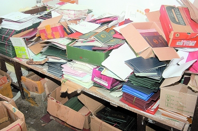 10月24日,根據(jù)前期偵查摸底掌握的情況,(甘肅省蘭州)市公安局便衣偵查支隊(duì)在七里河一家屬院,打掉一家族式特大制販假證犯罪團(tuán)伙,抓獲6名犯罪嫌疑人。3間臥室里堆滿了假證,4名民警整整數(shù)了20個(gè)小時(shí)。