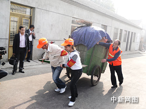 中新網(wǎng)鹽城十月二十六日電 (于從文 王慧)一九五九年十月二十六日,國家主席劉少奇親切接見掏糞工人時傳祥。二〇〇九年的今日,鹽城市開展首屆環(huán)衛(wèi)工人日。六十名大中專院校優(yōu)秀在校大學生、學生干部、入黨積極分子青年志愿者走上街頭,甘當一天環(huán)衛(wèi)工人。