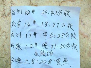 由于年齡大了,記不住那么多時(shí)間,于是每星期日兒子返校前就會(huì)給于女士寫(xiě)一張時(shí)間表,里面有收菜的時(shí)間、喂魚(yú)食的時(shí)間、還有上別的同學(xué)地里偷菜的時(shí)間,以方便于女士操作。
