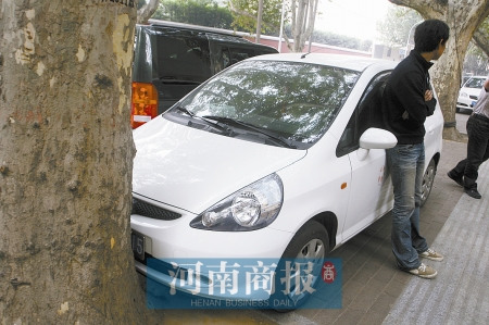 昨天上午10時(shí)許,小王從金水路與經(jīng)五路交叉口往北走,聽(tīng)見(jiàn)幾個(gè)人在爭(zhēng)論。湊過(guò)去一看,有輛白色本田車(chē)頭緊貼一棵法桐,幾個(gè)人正爭(zhēng)論車(chē)頭是否挨上了樹(shù)。