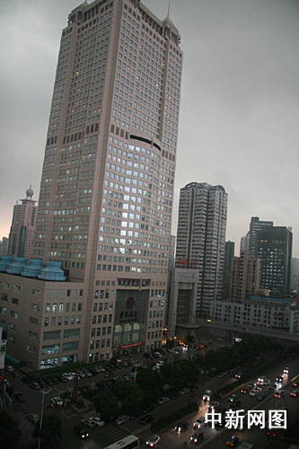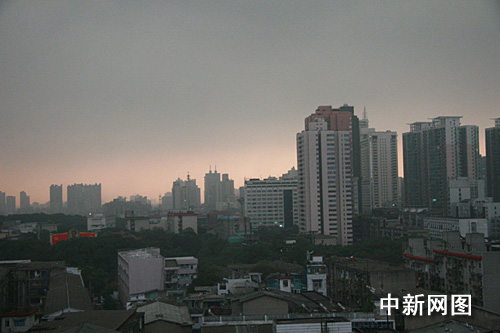 芙蓉路上不少高層寫字樓里的白領(lǐng)還趕緊跑到窗戶前,查看外面的動(dòng)靜。記者站在長(zhǎng)沙城區(qū)中心的某寫字樓俯瞰,整個(gè)城市黑云壓境,由于天色陰沉,能見度低,不少道路兩旁的路燈都已經(jīng)提前點(diǎn)亮,行駛在路上的汽車紛紛開啟了前后燈。