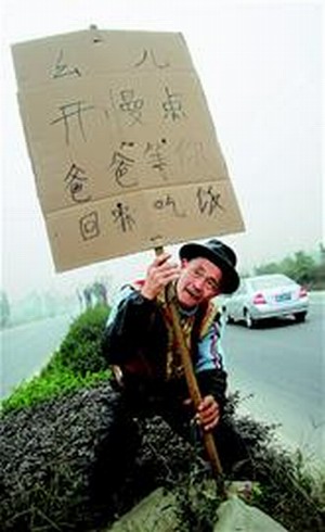 黑幕降臨,成青金快速通道梁勝村路口邊的平房內(nèi),32歲的廖大姐正在灶房里做飯,5歲的女兒唱著歌溜出屋。突然一陣刺耳的剎車聲響起。廖大姐如觸電一般,手中菜刀墜落在地。奔出門外,見女兒并未走近路口,一把將其緊緊抱住……3天內(nèi),這個路口就吞掉了兩條人命。兩年多來,僅梁勝村就有8名村民在此路口丟了性命,被稱為“死亡路口”,在反映10余次無果后,昨(8)日,該村60歲的“弼馬溫”董永發(fā)將親手制作的警示牌立在了路口:“幺兒,開慢點,爸爸等你回家吃飯!”
