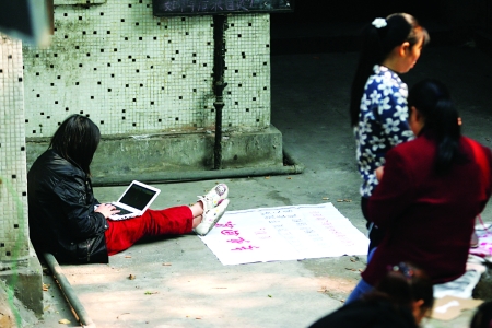 前日,網(wǎng)友“壞豬”在大渝網(wǎng)新聞報(bào)料吧上,以《史上最拉風(fēng) 收廢品女》為名發(fā)帖報(bào)料!皦呢i”在帖子中稱,前日上午,他剛好從該居民樓前經(jīng)過時(shí),隱約看到樓梯口有一黑影,轉(zhuǎn)頭查看,眼前的景象將他雷得“外焦內(nèi)嫩”:一身穿黑衣的女子,背靠墻壁席地而坐,身前放著一個(gè)寫有“專業(yè)回收”的廣告布,她對(duì)過往市民毫不理會(huì),而是專心敲打放在其大腿上的筆記本電腦。“我還從來沒看到過哪個(gè)收廢品的有這個(gè)女的這么潮!太拉風(fēng)了噻”。