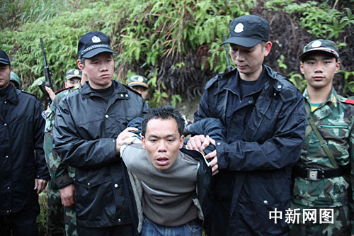 近400名的武警、公安民警以及干部群眾冒著蒙蒙細雨,分成40多個小組,形成合圍之勢,立馬展開拉網(wǎng)式的搜山行動。經(jīng)過兩個小時的圍山搜捕,16時57分,犯罪嫌疑人石順兵在“大紅山”的最高處的草叢中被搜山的武警戰(zhàn)士抓獲。