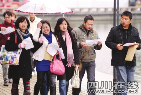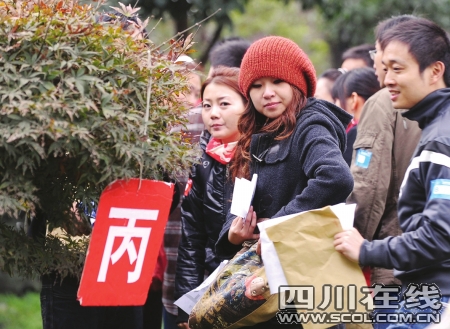 “喝著鹽水聊天!喝著鹽水聊天!有沒有人接暗號啊?”“說話凈閑(咸)扯!終于找到你們了!弊蛉障挛3點(diǎn),成都高新區(qū)大型公益單身青年聯(lián)誼會在有趣的拓展訓(xùn)練中拉開帷幕。盡管是周末,但高新區(qū)孵化園露天中心廣場卻人頭攢動,好不熱鬧。三人一組的單身白領(lǐng)冒著冬雨,頂著寒風(fēng),站在現(xiàn)代化的樓宇間,口里齊聲喊著一些奇怪的詞組。原來,現(xiàn)場趕來的600多名單身青年們隨機(jī)分成了若干小組,正在參加moving&meeting(找朋友)的拓展游戲。通過地圖找到指定地點(diǎn),喊著接頭暗號,兩個陌生的小組重新組成一個大組,然后進(jìn)行新一moving&meeting(找朋友)游戲。最終8個三人小組組成了一個團(tuán)隊(duì),原本陌生的24個人在游戲中相互認(rèn)識、一起完成游戲任務(wù)。隨即,團(tuán)隊(duì)間進(jìn)行了“幸福團(tuán)團(tuán)轉(zhuǎn)”、“迎接新娘”等趣味游戲。