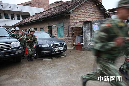 石順兵殺人后逃至一座方圓三平方公里、名為“大紅山”的荒山上藏匿。當(dāng)日下午,河池市武警官兵、公安民警等四百多人集結(jié)在山上進(jìn)行地毯式搜山。下午四點(diǎn)多,幾名武警發(fā)現(xiàn)山上一塊巖石下的草叢中竄出一人,其見到武警后又立即回竄,三名武警遂躍上前去。面對(duì)三個(gè)黑洞洞的槍口,石順兵舉起雙手說(shuō):“我投降!”