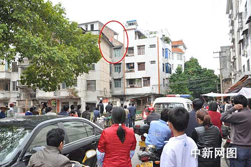 現(xiàn)場群眾說,該男子大概是中午12點(diǎn)左右上到樓頂,剛開始還以為是宿舍樓的住客,后來看到男子坐在樓頂邊緣將手機(jī)、錢包還有一張紙條丟到樓下馬路。