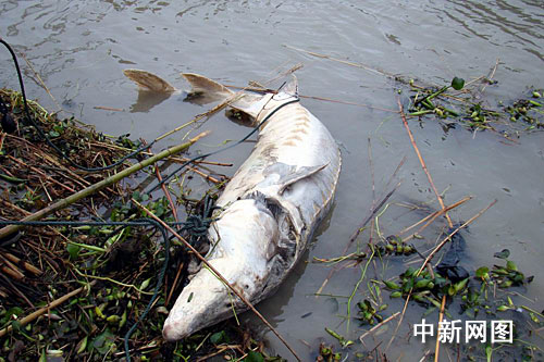 中新網(wǎng)武漢11月29日電 (黃俊鵬 鄭北川 徐金波)一頭長(zhǎng)度3.09米、重約200公斤、年齡約20歲的死亡中華鱘29日在湖北咸寧江段被發(fā)現(xiàn)。