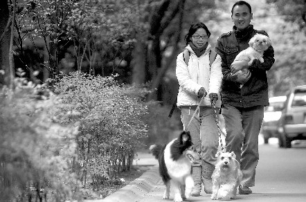 “幺兒,讓爸爸媽媽抱抱!”昨日下午,家住雙園社區(qū)的小馬夫婦把他們的“掌上明珠”擁在懷里,享受著“天倫之樂(lè)”。其實(shí)嘛,他們的幺兒,就是四只狗狗。這對(duì)已經(jīng)36歲的夫妻,決定不生育后代了,就把寵物當(dāng)孩子。傳說(shuō)中,這樣的家庭模式,就叫做“丁寵”。