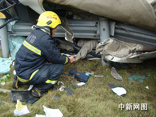 就在救援工作正一步一步緊張的展開時候,救援人員發(fā)現(xiàn),貨車油箱漏油十分嚴(yán)重,若不及時處置,遇到破拆的火星后果不堪設(shè)想,指揮員當(dāng)即命令使用壓縮空氣泡沫槍,在救援現(xiàn)場有油污的地方附上一層泡沫,防止二次災(zāi)害的發(fā)生。經(jīng)過消防官兵30分鐘的緊張施救,第一名被困駕駛員成功救出,送往醫(yī)院救治。11時許,另一名被困人員也被成功救出,但經(jīng)現(xiàn)場醫(yī)生確定已經(jīng)死亡。