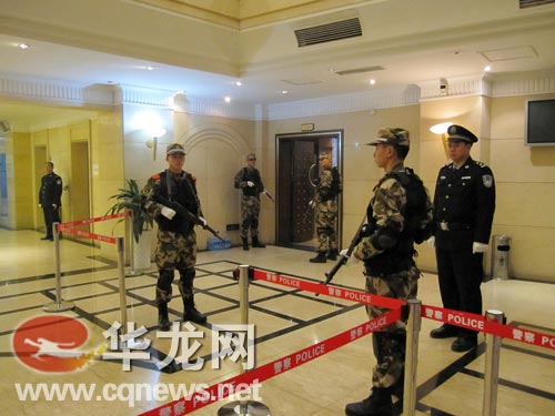 記者在法院現(xiàn)場看到,此次庭審安檢非常嚴格,總共有三道防線。第一道在在法院周邊50米左右,有交警戒嚴,社會車輛一律不得進入。第二道在法院樓下,已拉起警戒線,旁聽群眾、記者、律師等必須持有旁聽證或相關證件才能入內(nèi)。第三道線在進入法院時,所有人員必須接受安檢,手提包全部寄存,手機、筆記本、相機等隨身物品均不得帶入法庭內(nèi)。法院大門外和法庭門外均有特警持槍站崗,進入法院大樓內(nèi)手機信號將會被屏蔽。