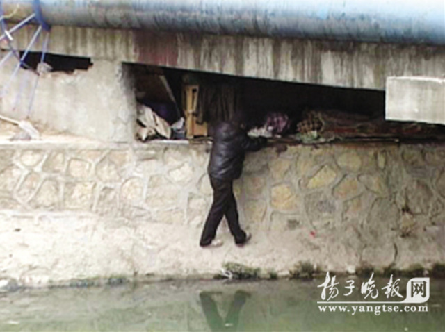 據(jù)了解,該落水男子是安徽人,在南京已經(jīng)好幾年了,平時(shí)靠打零工和收舊維持生活。記者在現(xiàn)場(chǎng)看到,他住的橋洞內(nèi)還住有其他民工,橋洞下塞了一排被褥。據(jù)周圍居民說,老人落水時(shí),他們都在組織救人,而橋洞內(nèi)兩個(gè)年輕人還在呼呼大睡,再詢問兩年輕人時(shí),兩人一臉茫然。他們睡的地方實(shí)際上是河道坡面上的一塊平臺(tái),空間極其狹窄。由于兩邊設(shè)有鐵柵欄,禁止人翻越的,但是他們進(jìn)出橋洞只能翻越柵欄順著坡面爬到橋洞內(nèi),稍有不慎就會(huì)墜入河中。(本報(bào)記者 任國(guó)勇 文/圖)