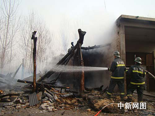 消防官兵到現(xiàn)場(chǎng)展開(kāi)緊急滅火,經(jīng)過(guò)20幾分鐘救援,大火才終于撲滅。但因火勢(shì)較大木棚房易燃的木頭燒焦斷裂,磚墻倒塌。使整個(gè)木棚房坍塌一片。