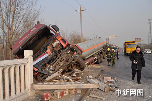 中新網(wǎng)洛陽1月27日電 (記者 李金輝 通訊員 王力)1月26日下午15時許,在洛陽市新安縣310國道磁澗鎮(zhèn)磁澗橋上,一輛滿載30噸氫氧化鈉的槽車不慎側翻,發(fā)生嚴重泄漏,周圍居民的生命安全受到極大威脅。