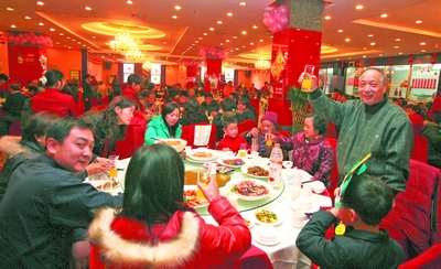 謝浮名(星辰在線“你說話吧”論壇版主):記得我們小時候,家家戶戶在火爐上架個桌子,到了除夕夜,沒把年夜飯端上來的時候,就嗑瓜子,喝點小酒,然后再圍在一起吃年夜飯,盡情享受這種悠然的快樂,F(xiàn)在這個年夜飯到店子里面吃,如果還被限制了時間,定然會讓人感覺不痛快。
