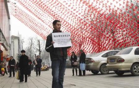 “租女朋友回家過(guò)年!”昨日上午,一名小伙在青山紅鋼城舉出這樣一個(gè)小廣告。“我曾哄母親說(shuō)早談女朋友了,母親非要我今年帶回去,租女友實(shí)在是迫不得已!”昨日,舉小廣告的小伙潘小青難為情地對(duì)記者說(shuō)。據(jù)潘小青介紹,1995年他20歲時(shí),從江西老家來(lái)到武漢,在一所藝術(shù)學(xué)校學(xué)習(xí)聲樂(lè),畢業(yè)后開(kāi)始在青山紅鋼城一帶做小生意,近年來(lái)先后經(jīng)營(yíng)過(guò)小酒吧、鞋店和服裝店等。今年1月24日,他把店子轉(zhuǎn)讓出去,準(zhǔn)備回江西老家與親人團(tuán)聚!白馀鸦丶遥炔皇怯惺裁捶欠种,也不是為了炒作!”潘小青明確表示,租女友回家過(guò)年,是為了讓母親過(guò)得開(kāi)心。潘小青的母親今年54歲,患有腰椎間盤(pán)突出,身體狀況非常不好。眼看潘小青的同齡人紛紛結(jié)婚生子,可潘小青一直單身,做母親的非常著急。