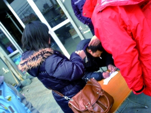 近日,六里橋長途客運(yùn)站外出現(xiàn)多個(gè)“山寨版長途站”,從攬客、收費(fèi)、送站均為一條龍服務(wù)。這些站點(diǎn)自制“車票”當(dāng)街發(fā)售。而長途站內(nèi),“黃!痹谑燮睆d內(nèi)倒賣緊俏車票,高出正規(guī)票一倍叫賣。乘客們普遍認(rèn)為,春運(yùn)對(duì)正規(guī)客運(yùn)站壓力過大,這給票販子們漁利空間。