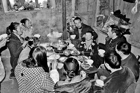 “快點(diǎn)烤一會(huì)兒再去泡個(gè)熱水澡。你娃兒他媽老早就給你燒好了洗澡水。完了出來(lái)吃團(tuán)年飯,我們一直在等你!崩细赣H幫譚崇文一邊卸著包袱一邊說(shuō)。