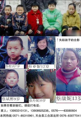 失蹤名單被公布在了各大論壇,其中一位失蹤兒童蔡松濤的父親叫蔡修明,另4名兒童是他弟弟的孩子。