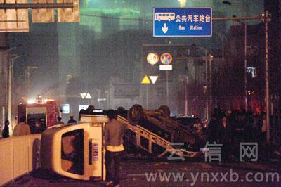 昨晚10時許,記者接到熱線電話稱,昆明北倉村大量群眾和城管隊員發(fā)生沖突。隨后,記者趕到位于北市區(qū)銀河大道旁北倉村事發(fā)現(xiàn)場時,多輛警車及城管的車停放在周圍。數(shù)百人圍著一輛微型貨車大叫“打人的城管人員就在車?yán)铩薄皟词殖鰜怼彪S后,警察拉起了警戒線。不時有石塊、磚塊從人群中飛出,砸在微型貨車上。現(xiàn)場警察試圖制止但沒有效果。記者從一名官方人士處得知,昨晚7時許城管在執(zhí)法時導(dǎo)致一名老人受傷,但在民眾的傳言中,變成了“城管打死人”,于是導(dǎo)致了大范圍沖突事件發(fā)生。