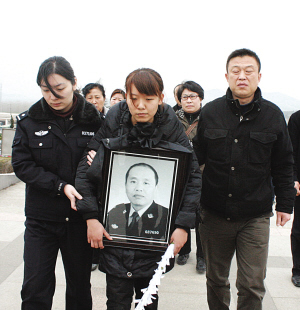 3月27日上午10時(shí)許,在徐州市殯儀館的追悼大廳內(nèi),陳勛的700多名戰(zhàn)友來(lái)了,陳勛的親友來(lái)了,陳勛的街坊四鄰也來(lái)了,他們要送陳勛最后一程。送別陳勛的,不但有其疼愛(ài)的女兒,還有70多歲滿頭白發(fā)的母親,其情其景,令人動(dòng)容。