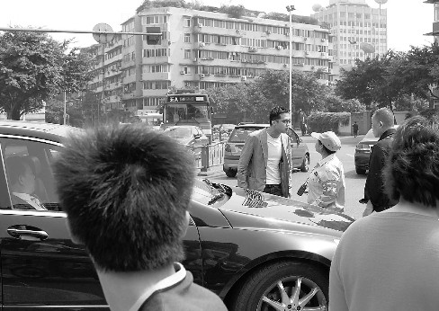 在此處執(zhí)勤的女交通勸導(dǎo)員立即上前攔住了第二輛意圖違法調(diào)頭的奔馳車。沒想到,奔馳車車主毫不理會(huì)她的阻止,不僅調(diào)過了車頭,更逼得攔在車前的勸導(dǎo)員大姐步步后退到路旁。勸導(dǎo)員只好一面撥打電話一面防止這并未上牌的奔馳車溜走。這時(shí),從車上下來一名戴墨鏡的小伙子甩下一句:‘你不就是要罰個(gè)款嘛,老子有的是錢!’”