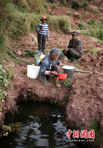 據(jù)介紹,2009年中秋節(jié)之后,坡西這帶就沒(méi)有下過(guò)雨?粗惶焯斓臏p少,每個(gè)人都憂(yōu)心忡忡的。大家都曉得,如果一直不下雨,這口井遲早都會(huì)干枯的。從那個(gè)時(shí)候開(kāi)始,上灣組的村民無(wú)論是出去放羊還是干農(nóng)活,哪怕只是路過(guò),都會(huì)留意哪里會(huì)有新的水源。