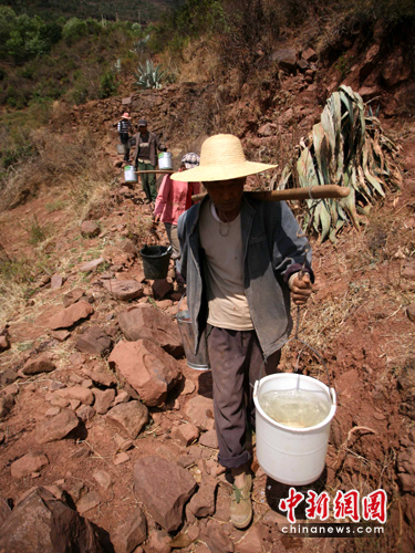 在忙碌的人群中一個(gè)佝僂的身影引起了記者的注意。那是80歲高齡且右腳患有輕微殘疾的殷蘭仙老人,她杵著拐杖沿著崎嶇的山路一步步地走到水源地。老人用記者不能完全聽(tīng)明白的彝語(yǔ)說(shuō):“修了水窖,我們吃水也就方便了。我還能動(dòng),還可以出力,做些力所能及的活。多一個(gè)人,水窖就可以早點(diǎn)完工!闭f(shuō)到這里,老人的臉上流下了不知是喜悅還是無(wú)奈的淚水。(完)