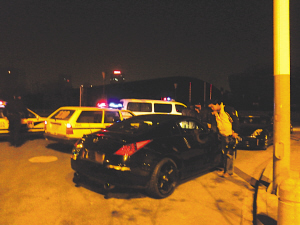 就在記者采訪的時(shí)候,4輛豪車又回到了奧體北門(mén)。大家停好車,紛紛下車抽煙聊天。記者急忙追了上去,只見(jiàn)在奧體北大門(mén)西側(cè)路面上,一字排開(kāi)著4輛顏色不一的豪華跑車,車尾處留下了一道道長(zhǎng)長(zhǎng)的剎車痕跡,足見(jiàn)停車前的速度很快。4輛顏色不一的豪華跑車中,有三輛車子上沒(méi)有上牌照,有一輛車子車牌擋著。車上下來(lái)的都是年輕人,車手都是男的,每人身邊跟著一位大美女。車主們說(shuō)這些跑車都是自己私車,個(gè)個(gè)都自稱是富二代,他們每個(gè)人所開(kāi)的跑車都在80萬(wàn)至100多萬(wàn)之間,還不是最好的車輛。見(jiàn)此情況,記者立刻報(bào)了警,并拿出相機(jī)拍照采訪。