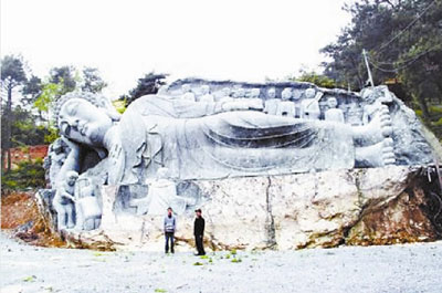 近日,一尊長(zhǎng)33米、高11.5米的青石臥佛在長(zhǎng)樂市潭頭鎮(zhèn)邊蘭村錦鋰巖建成。這尊巨型臥佛就地取材,由一塊天然整體青石巖現(xiàn)場(chǎng)雕刻而成,在大臥佛旁邊,還有12尊高2.8米的小佛像。這尊臥佛2007年初開始雕刻,歷經(jīng)3年,由惠安崇武著名雕刻大師和雕刻高手設(shè)計(jì),20多人雕刻而成。
