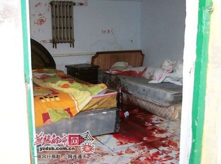 據(jù)旅店老板介紹,12日下午三點多,她看到小明小亮居住的房間門前有幾個血腳印,心里想這是怎么了,就上前敲門,里面的人不開門,她繼續(xù)敲門,門終于開了,她也被眼前的場景驚呆了:“屋子里的血流了一地,其間還夾雜著醉酒的嘔吐物,大片的血跡中間是兩個啤酒瓶子。兩個男孩一個蹲坐在地上,一個坐在床上,一邊墻上用血寫著‘XX,我愛你’,一邊寫著‘我錯了,我愛你……’ ”