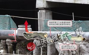 鐘福平說,聽到工地沖進搶包嫌犯,他也慌忙來到污水管處。交巡警和幾名市民已在現(xiàn)場。鐘福平告訴交巡警,這是解放碑商圈的排污管道,管道直徑0.8米,只容得下一個人爬行。