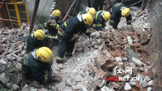 經(jīng)現(xiàn)場(chǎng)偵察發(fā)現(xiàn),坍塌房屋為一間磚瓦結(jié)構(gòu)的倉(cāng)庫(kù),由于連續(xù)暴雨,泥土松動(dòng)引發(fā)山體滑坡,泥石流將房屋埋壓,現(xiàn)場(chǎng)隨時(shí)都有二次滑坡的可能。面對(duì)危急復(fù)雜的現(xiàn)場(chǎng),大隊(duì)指揮員果斷下令指派安全員觀察現(xiàn)場(chǎng)、設(shè)立安全隔離帶、疏散圍觀群眾、調(diào)集醫(yī)護(hù)人員在場(chǎng)等候,指揮中隊(duì)官兵全力搜救。三分鐘后,一名被困者被成功救出并立即送往醫(yī)院救治,經(jīng)詢(xún)問(wèn)現(xiàn)場(chǎng)知情人,屋內(nèi)還有一名中年男子被埋壓在廢墟里面,經(jīng)大致排查方位,大隊(duì)指揮員立即命令中隊(duì)官兵進(jìn)行多點(diǎn)作戰(zhàn),對(duì)重點(diǎn)部位進(jìn)行地毯式搜救,經(jīng)過(guò)消防官兵近半個(gè)小時(shí)的艱苦奮戰(zhàn),被困人員被成功救出。(通訊員 楊凡)