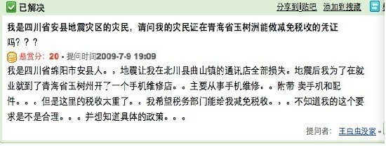 玉樹(shù)地震發(fā)生當(dāng)日,一位名叫“王蟲(chóng)蟲(chóng)沒(méi)家”的網(wǎng)友,因?yàn)樵谌ツ?月百度知道上發(fā)出的一個(gè)帖子被人重新翻起,而成了數(shù)萬(wàn)網(wǎng)友關(guān)注的焦點(diǎn)。這位網(wǎng)友曾經(jīng)在北川開(kāi)了一家手機(jī)維修店,5.12汶川大地震中北川被震毀,幸存下來(lái)的“王蟲(chóng)蟲(chóng)”在震后選擇到玉樹(shù)州重新創(chuàng)業(yè),并想開(kāi)一家手機(jī)維修店。“王蟲(chóng)蟲(chóng)”的這番遭遇,引起了網(wǎng)民的高度關(guān)注,“王蟲(chóng)蟲(chóng)”也被網(wǎng)友稱(chēng)為最悲情的人物。因?yàn)椤巴跸x(chóng)蟲(chóng)”最后一次上網(wǎng)登錄的時(shí)間已是地震一個(gè)月前了,他(她)能否再次躲過(guò)這一次天災(zāi),成了眾多網(wǎng)友關(guān)注的焦點(diǎn)。四川在線(xiàn)記者在到達(dá)玉樹(shù)后不久,想盡辦法找尋這位網(wǎng)友。