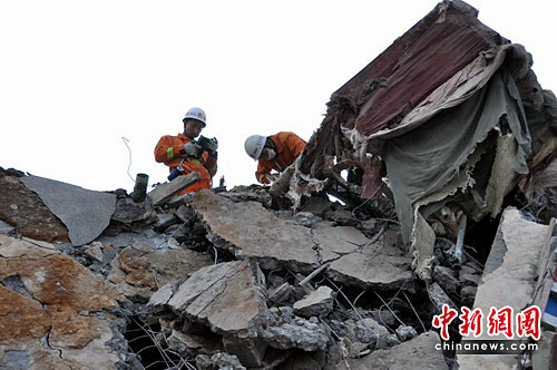 隨著時間流逝,救援工作漸進(jìn)尾聲,尋找到生命跡象更顯渺茫,官兵們卻始終保持著德陽消防抗震救災(zāi)的頑強(qiáng)斗志,穿梭在玉樹縣各街道、村莊。隊員們顧不上停住腳步喝水;他們堅信只要不放棄,一定能救出生還群眾!安还苁撬丫缺宦袢罕,搭建帳篷,還是幫助災(zāi)區(qū)群眾排除困難,所有的工作都是以沖刺的速度在進(jìn)行!18日晚23時,已經(jīng)在玉樹戰(zhàn)斗了四天三夜的廣漢消防中隊劉明介紹,現(xiàn)在搜救仍然在進(jìn)行,只要有一線希望大家都將盡百倍的努力營救。