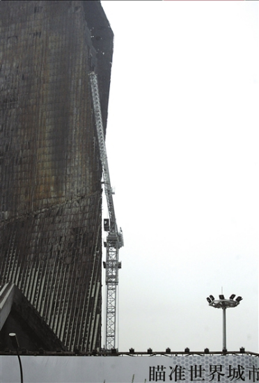 昨天,記者在央視大樓新址看到,過火的北配樓工地上已搭起塔吊。北京城建集團(tuán)相關(guān)項(xiàng)目負(fù)責(zé)人透露,他們正在為過火樓復(fù)工做前期準(zhǔn)備。