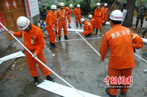 據(jù)統(tǒng)計,從災(zāi)害發(fā)生至7日下午14時,重慶消防參戰(zhàn)突擊隊150名官兵共營救被困群眾18人,疏散群眾361人,幫助搭建和維修房屋40戶,排除險情、路障76處,出動救援消防車輛60臺(次),出動官兵430人(次),搭建應(yīng)急救災(zāi)帳篷56頂。完