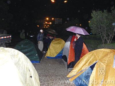 住戶 雨夜“露營”馬路