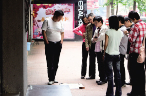 “相親男”的征婚行為引來不少路人觀看,其中也不乏一些年輕女子,不過她們均一笑置之。