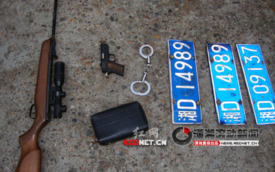 5月11日中午11時許,專門針對從銀行取款后的人實(shí)施搶劫的兩名冒牌警察,被衡陽市公安局南岳分局民警抓獲歸案。犯罪嫌疑人作案用的槍支、手銬、小車悉數(shù)被警方繳獲。
